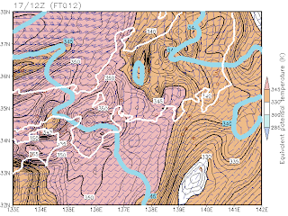 モデルでは17日925hPaの相当温位は最大で350kクラスの相当温位が予想されています。