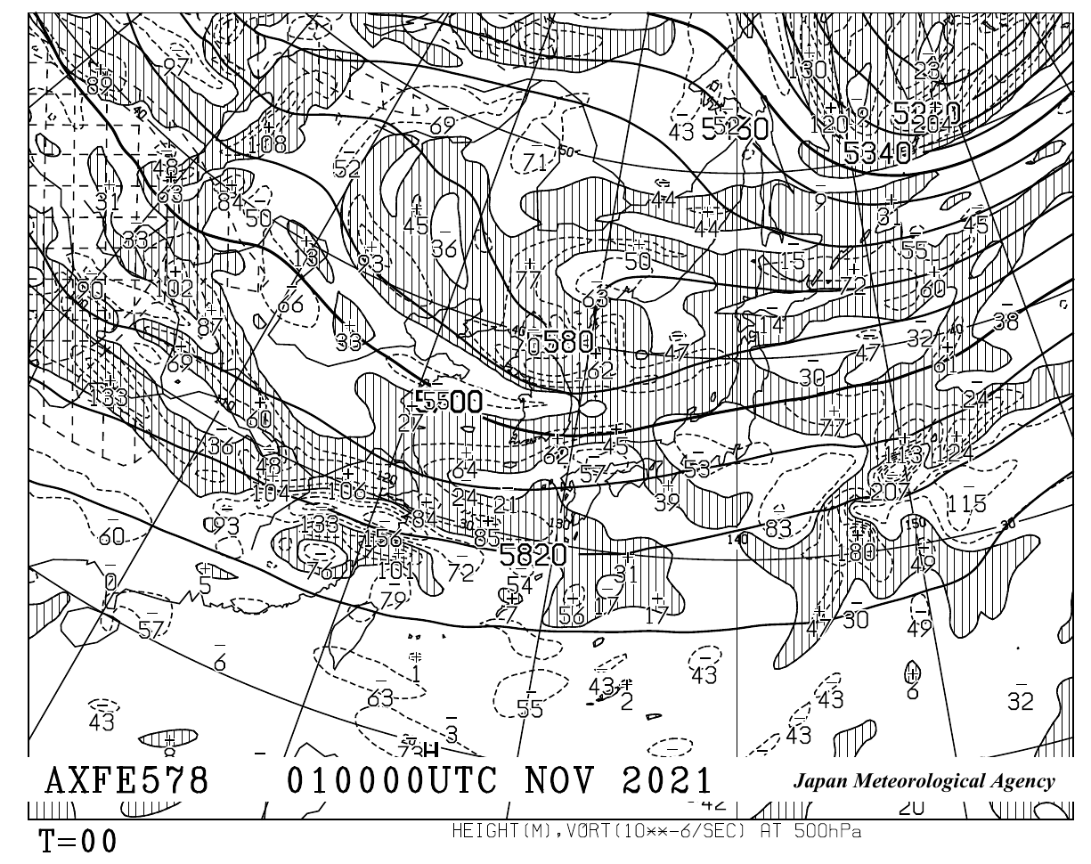 高層天気図2021年11月01日09時