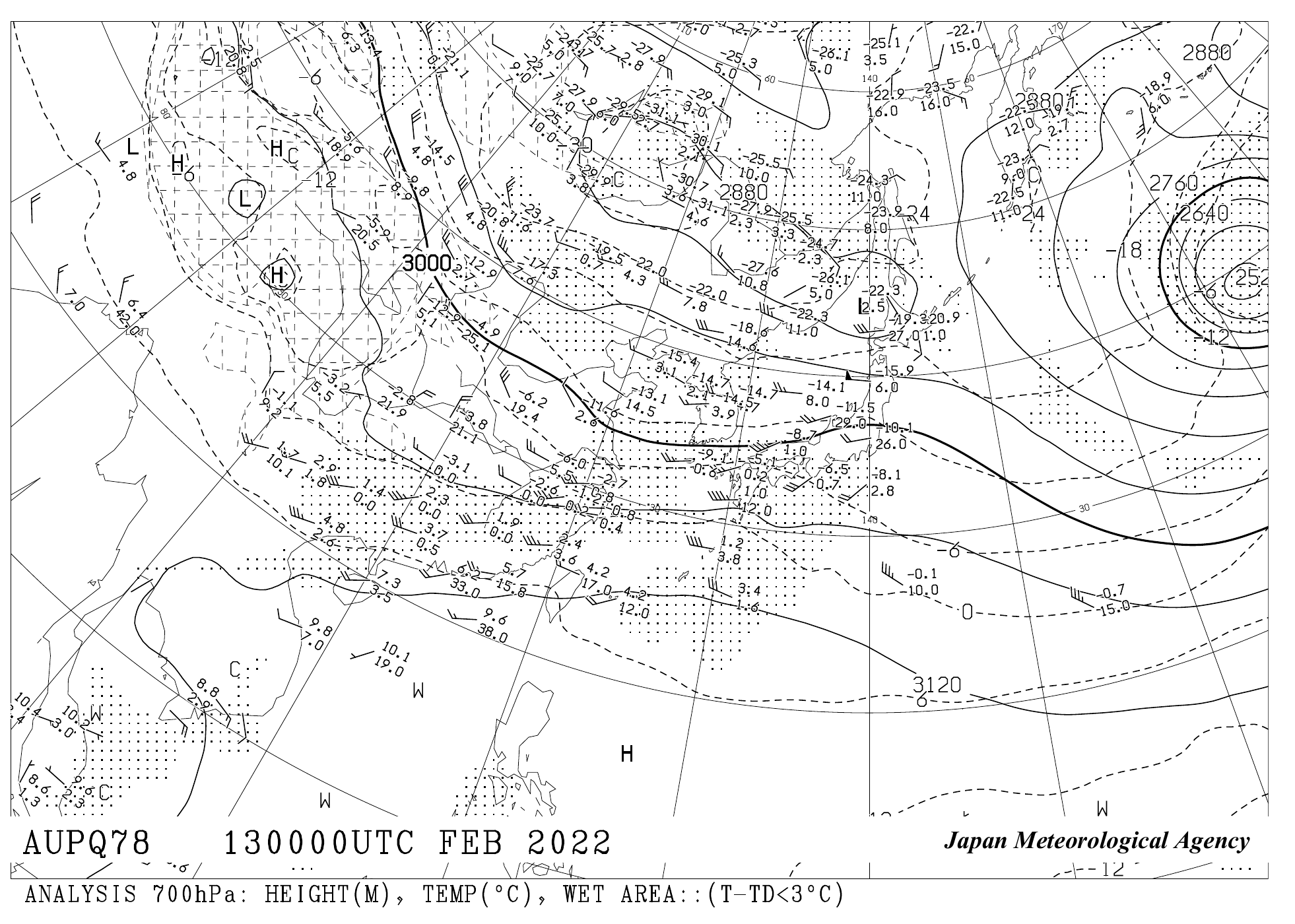 高層天気図2022年02月13日09時