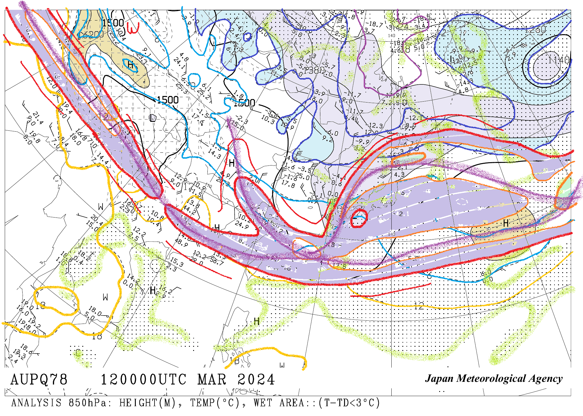 300&850hPa高層天気図