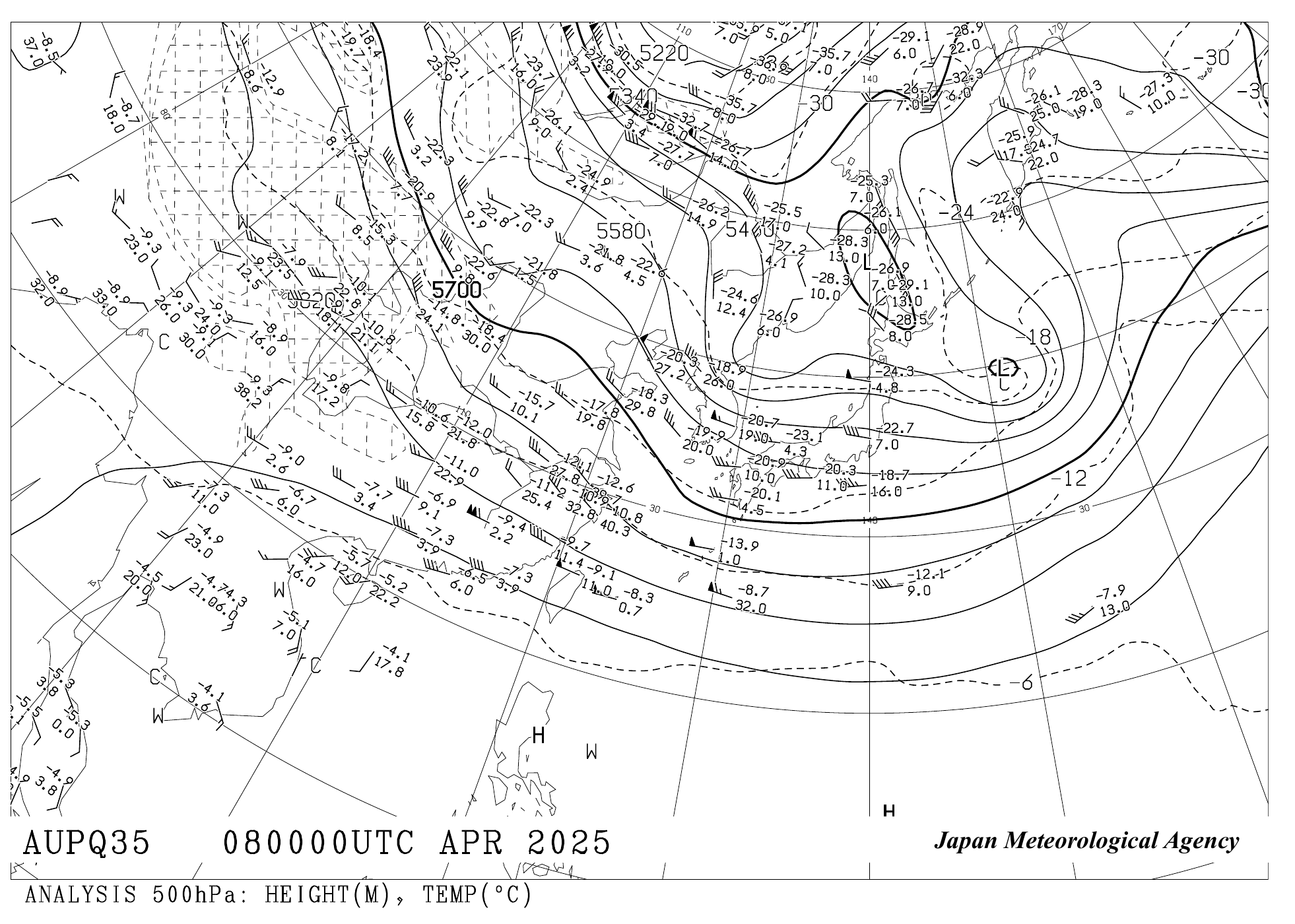 高層天気図2025年04月08日09時